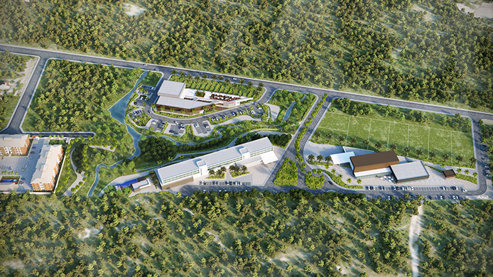 Parcelamento do solo mediante loteamento de gleba. Proposta de um conjunto com Lotes comerciais de 500m², gleba destinada a um centro médico e hotel budget destinados ao público do porto do Pecém. Contempla ainda um conjunto de condomínios residenciais multifamiliar com aproximadamente 140 unidades em cada.