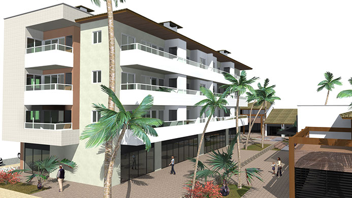 Centro comercial e área de convivência, composto de 04 (quatro) blocos de edificações, sendo 03 (três) delas de Mall e 01 (um) supermercado. Constituido de uma área construída total de 3.211,81m². Localizadas em Cumbuco – CE.