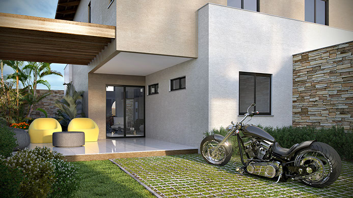 Projeto arquitetônico de um conjunto residencial unifamiliar, composto de quatro casas. Com duas configurações de plantas, três com área de 124,51m² e uma com 203,63m². Localizadas na região do Cumbuco – Litoral Cearense.