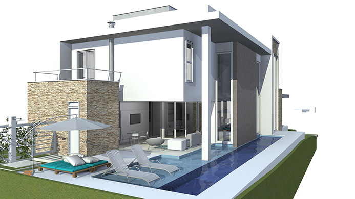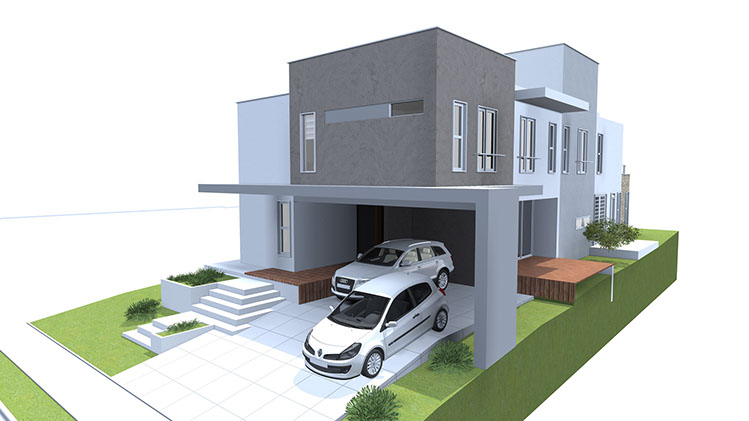 Projeto arquitetônico de uma residência unifamiliar de dois pavimentos. A casa possui 282,72m² de área construída e 127,00m² de área útil.