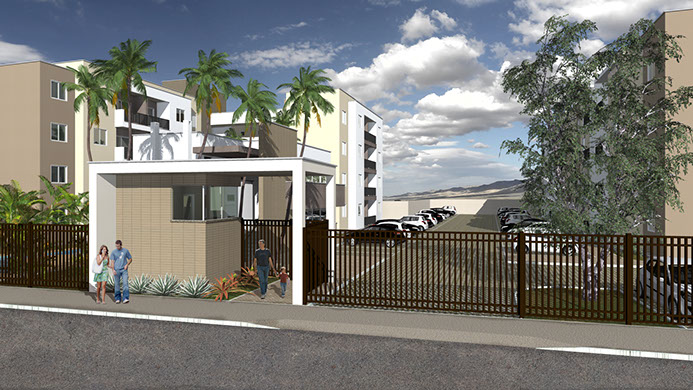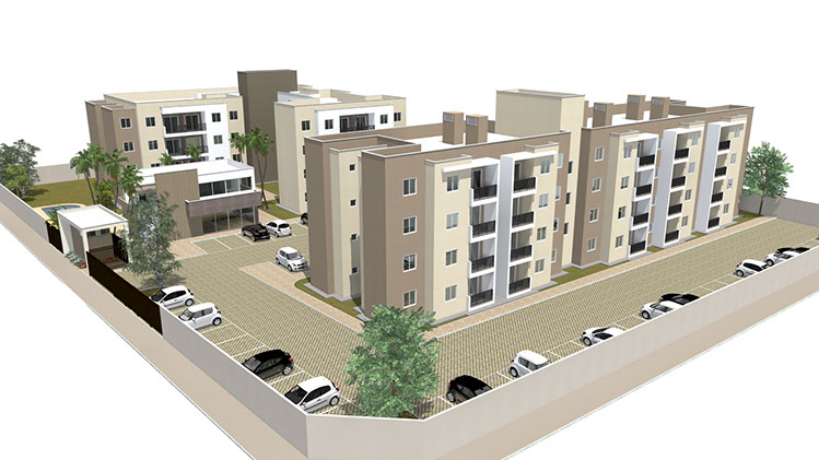 Condomínio Residencial Multifamiliar, composto de duas torres de apartamentos, somando um total de 80 unidades residenciais, com área útil aproximada de 45,00m². Em um terreno de área total de 4.597,68m².