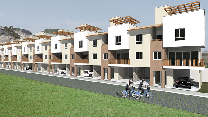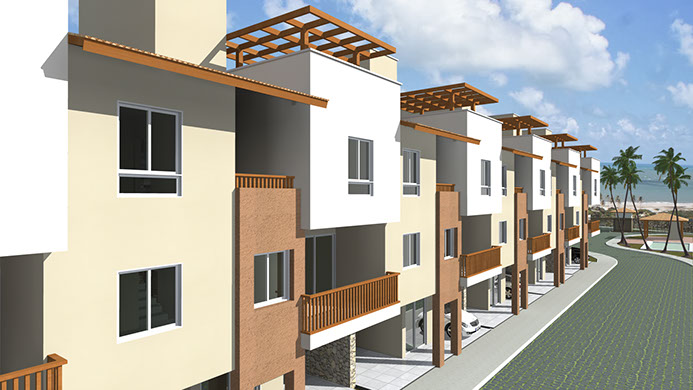 Condomínio residencial multifamiliar, composto de 12 (doze) residências unifamiliares, duplex, de 120,00m² de área útil. Localizado em Aquiraz – CE.